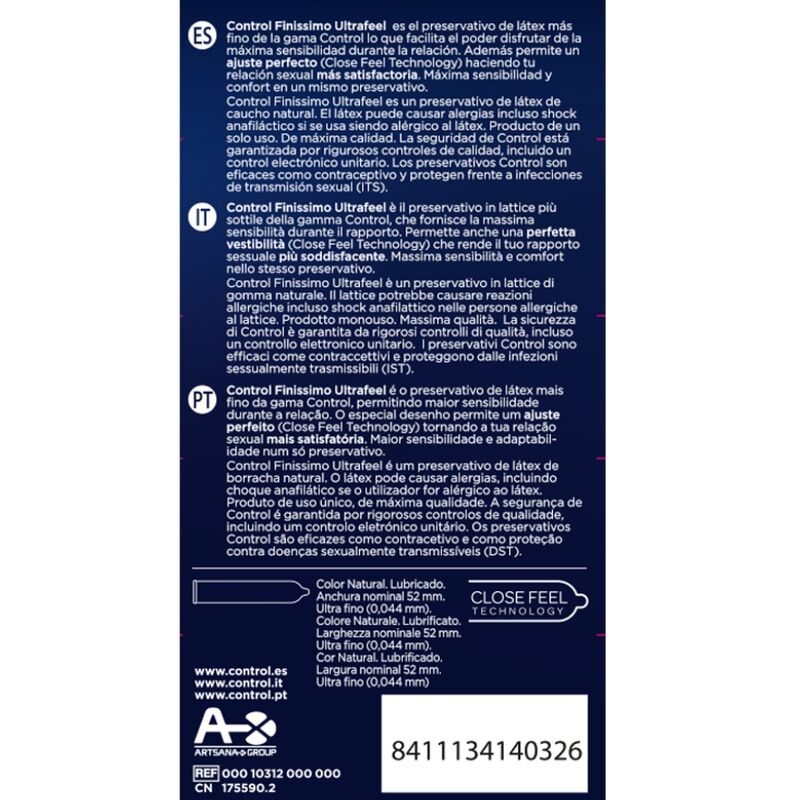 Para los que quieren sentir más Control lanza el preservativo más fino del mercado: UltraFeel. Son hasta un 30% más fino y con la misma seguridad. Ideales para los que buscan un contacto piel con piel pero sin ningún tipo de riesgo.